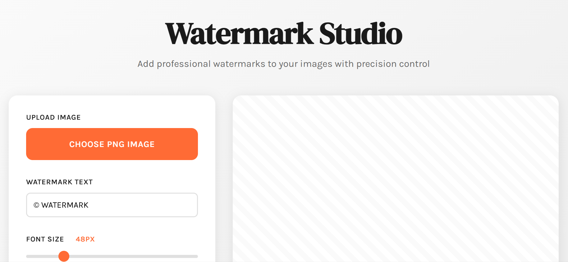 A browser-based watermark application that allows you to add customizable text watermarks to PNG and JPG images with full control over appearance and positioning.